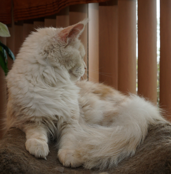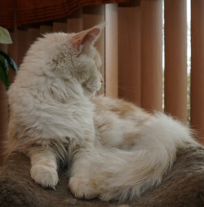Muse Coons Karlie of Ray Du Soleil Maine Coons lives with Becky and Dan in Milwaukee, WI