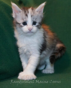 Ophelia is a beautiful and delicate calico girl with a soft, fluffy coat and bright, expressive eyes. She has a sweet, gentle personality and loves to observe everything around her with curiosity. Ophelia is affectionate, graceful, and developing wonderfully — a truly charming little lady.